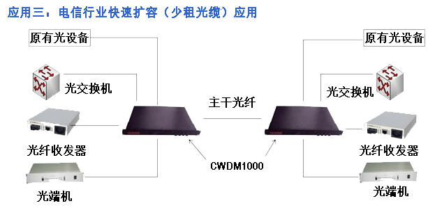 ◆ 方便擴(kuò)容:具有EXPRESS擴(kuò)容接口,多臺CWDM1000設(shè)備可以疊加使用,通道數(shù)量成倍增長。