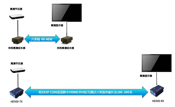 HD500與傳統延長器對比 (點對點的傳輸對比)